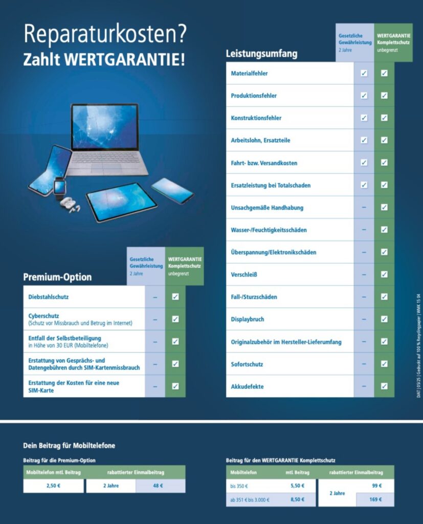 - Absicherung bei Defekten, Sturz- & Wasserschäden, Verschleiß u. v. m.